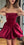 Evafashion A-Line Short Prom Dresses Satin Burgundy Homecoming Dresses Strapless Birthday Dresses HZ1024