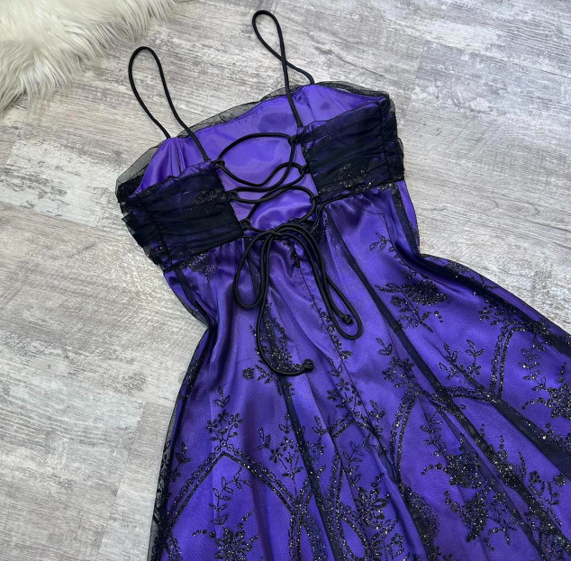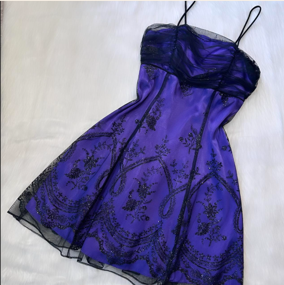 Evafashion A-Line Spaghetti Strap Tulle Short Prom Dress Purple Satin Homecoming Dresses HZ1024