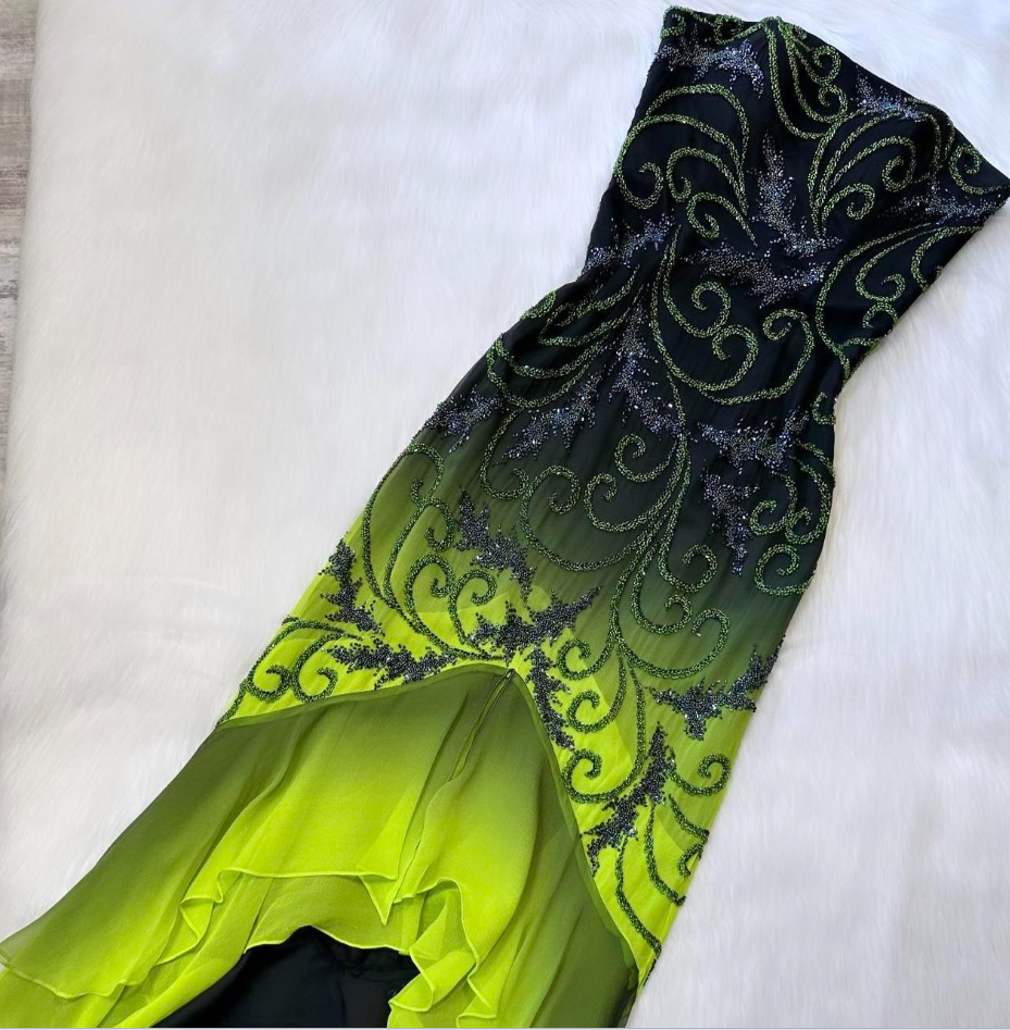 Evafashion Strapless Mermaid Beaded Chiffon Short Prom Dresses, Green Birthday Dresses HZ1024