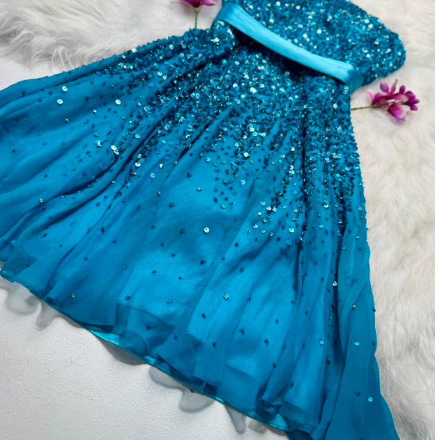 Evafashion Strapless Sheath Beaded Chiffon Short Prom Dresses, Blue Homecoming Dresses HZ1024