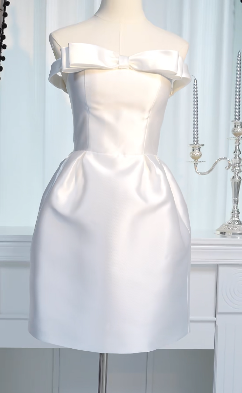 Evafashion Strapless Sheath Homecoming Dresses Satin White Short Bridal Gowns Sleeveless Birthday Dresses HZ1024