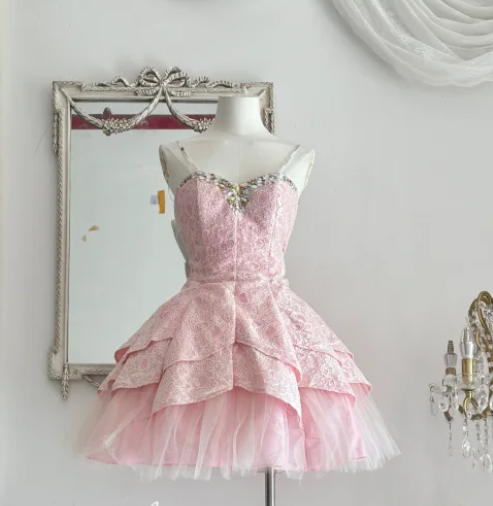 Evafashion Sweetheart A-Line Homecoming Dresses, Lace Sleeveless Short Prom Dresses HZ1024