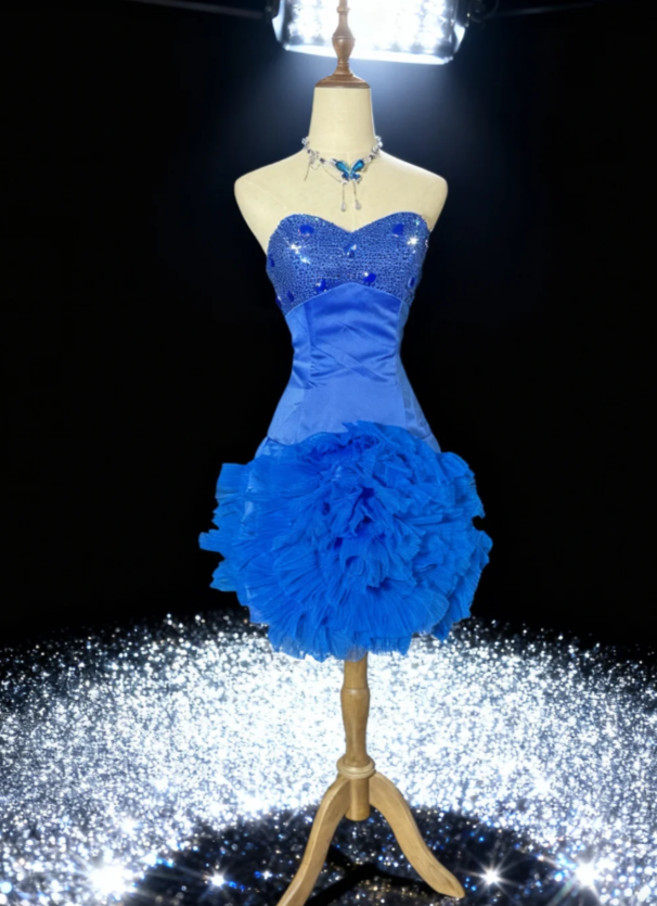 Evafashion Sweetheart Homecoming Dresses Blue Bodycon Short Prom Dresses Satin Tulle Classic Blue Birthday Dresses HZ1024