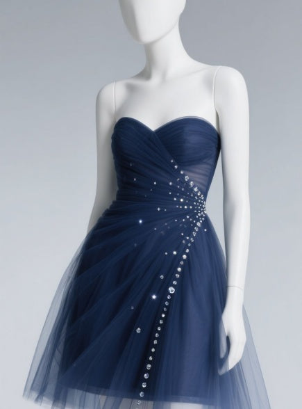 Evafashion Sweetheart Neck Sheath Short Prom Dresses Navy Blue Hoco Dresses HZ1024