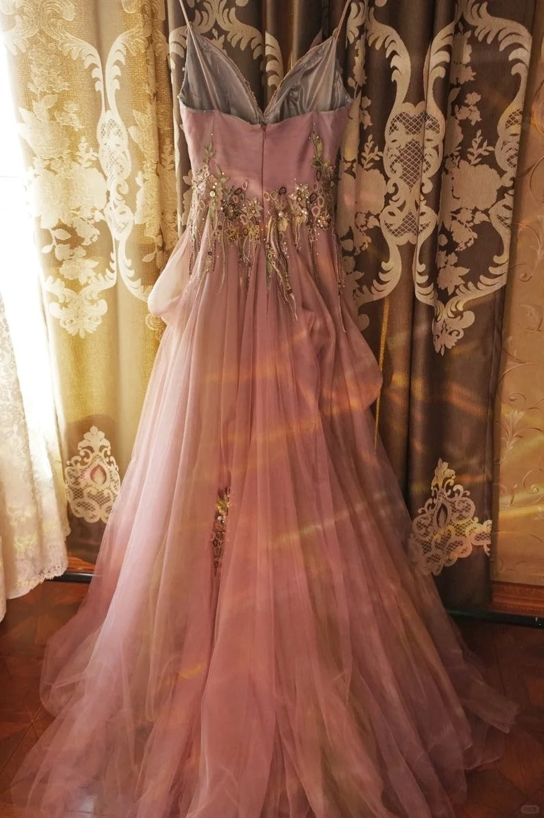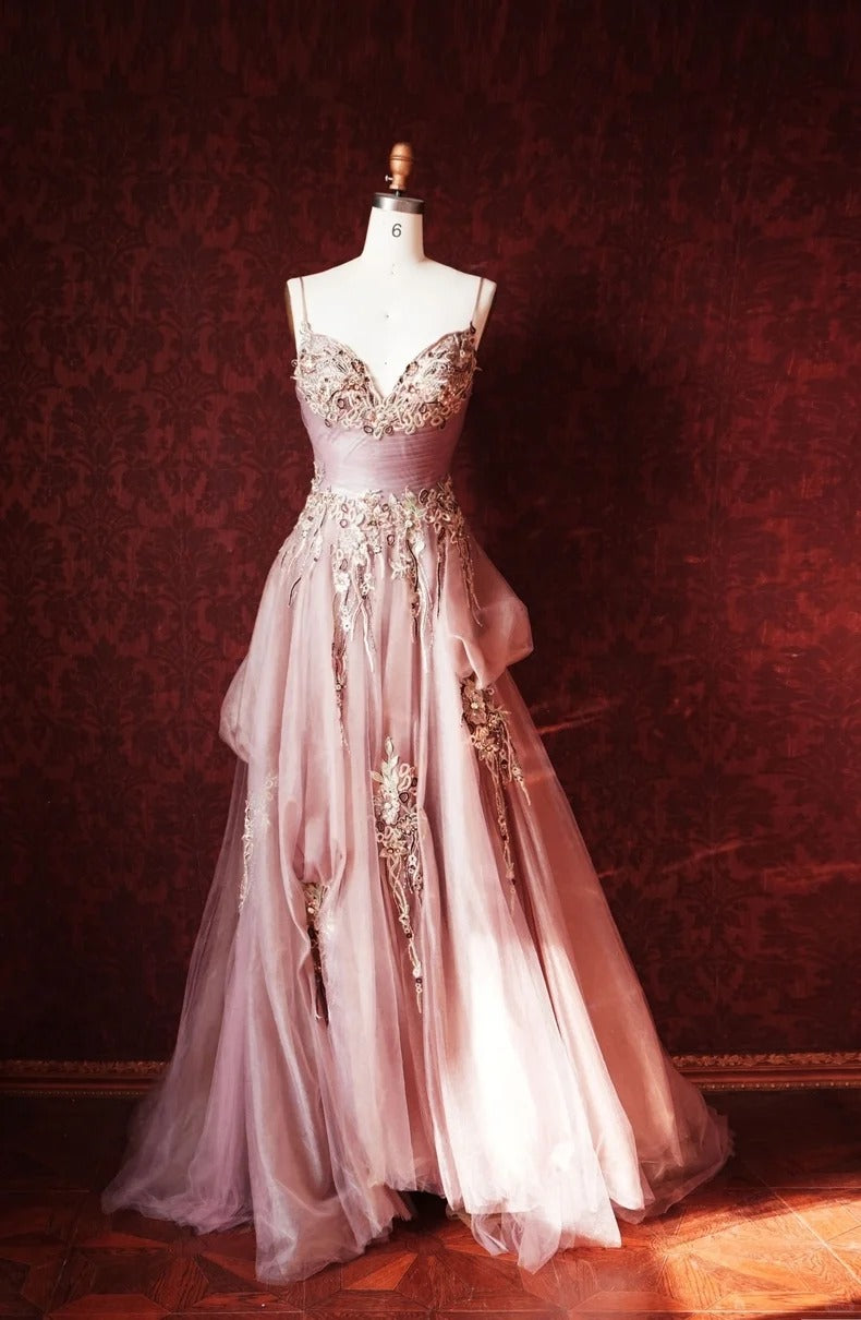 Evafashion A-Line Spaghetti Strap Tulle Long Prom Dress with Beaded Appliques Sweet 16 Dress HZ1024