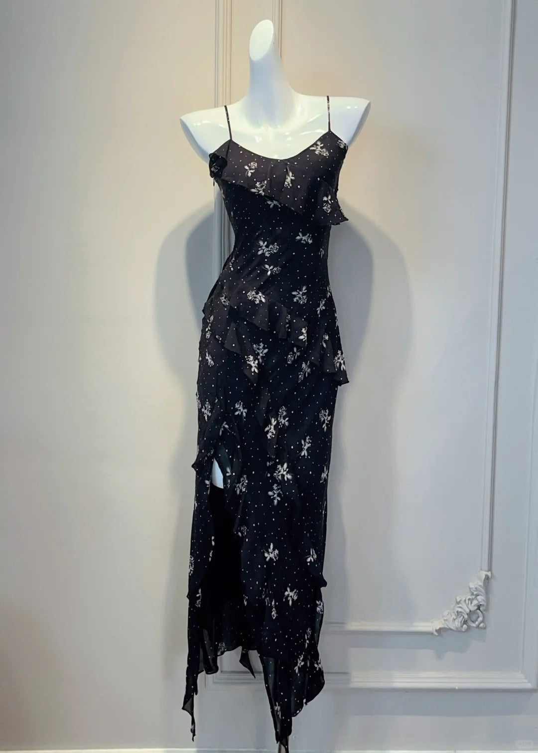 Evafashion Balck Sheath Straps Evening Dress Chiffon Floral Party Dress 16th Birthday Outfits HZ1024