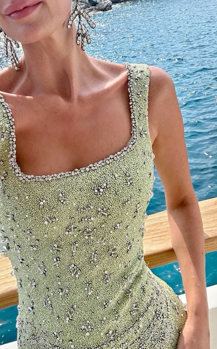 Evafashion Green Square Neck Sheath Beaded Short Party Dresses Homecoming Dresses HZ1024