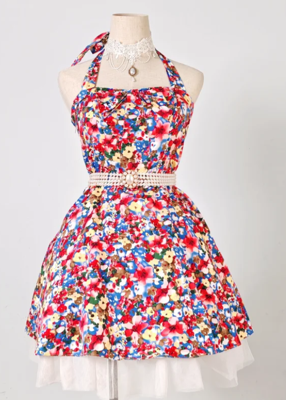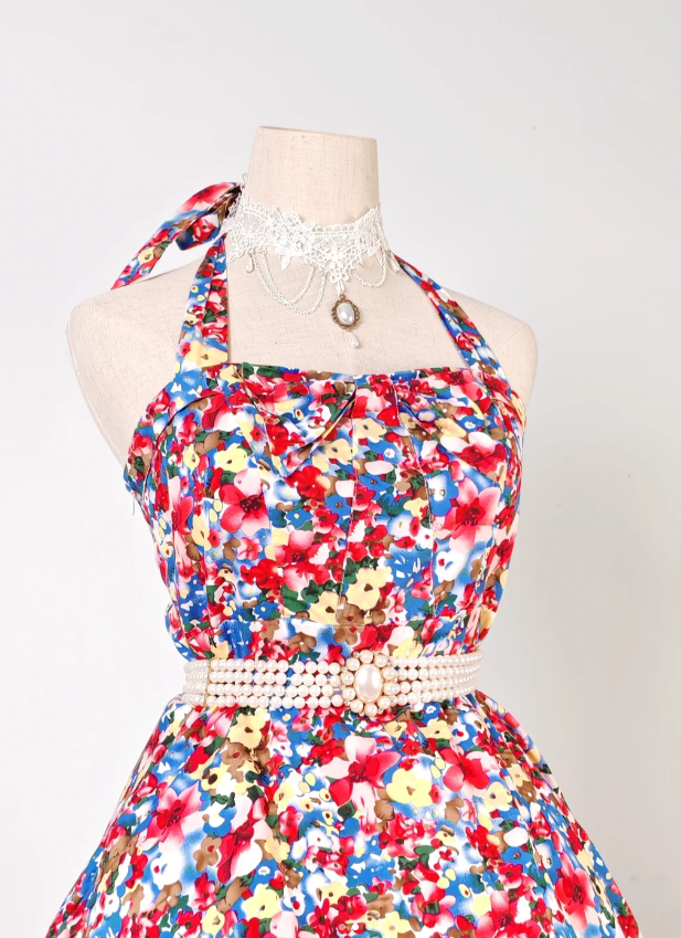 Evafashion Halter A-line Homecoming Dress Floral Birthday Dresses HZ1024
