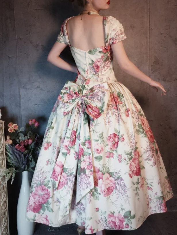 Evafashion V-neck Ball Gown Floral Prom Dresses HZ1024